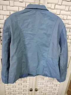 Chamarra de Piel Genuina Talla 40. Descripción:Chamarra de Piel Genuina Talla 40 Color Azul con Bolsas Laterales y Forro de Poliéster*Se puede hacer un paquete con varias prendas para pagar un solo envío
