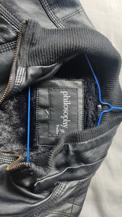 Chamarra de piel de la marca 'Philosophy', con 'peluche' adentro. Ha sido puesta algunas veces y no tiene detalles.