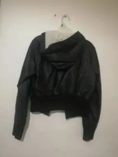 Chamarra de piel negra corta. Chamarra de piel corta, con borrega por dentro, con capucha igual con borrega