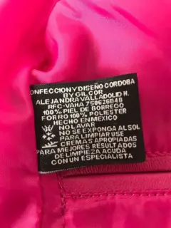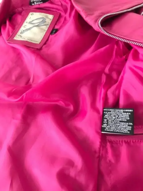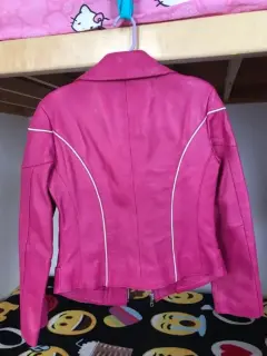 Chamarra de Piel Rosa. Rosa barbie con cierre al frente y aplicación en color blanco.En perfecto estado sin detalles