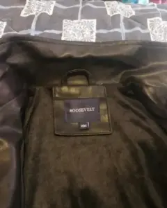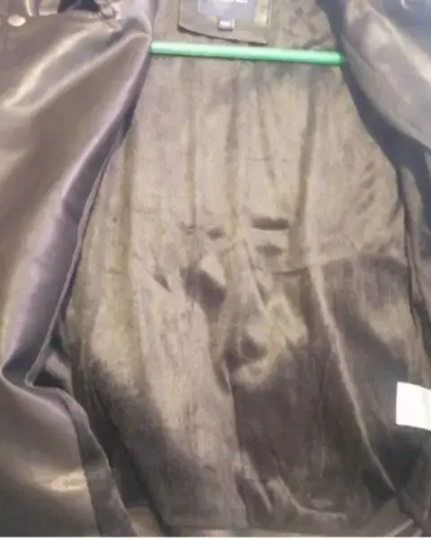 Es completamente nueva con etiqueta, sin detalles tiene forro de peluche, bno tiene detalles solo se compró hace como 2 meses pero no me la puse, la piel es suave, No rígida, tiene cierre en las mangas.