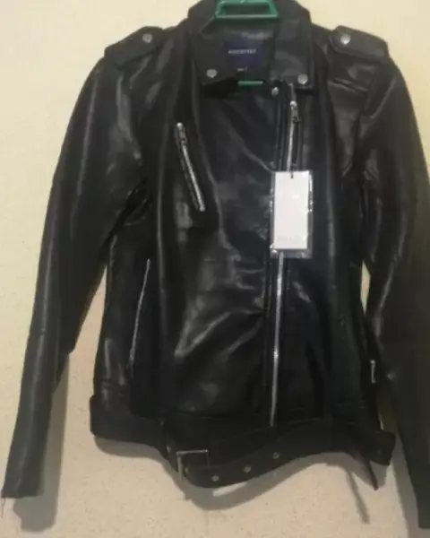 Chamarra de polipiel negra. Es completamente nueva con etiqueta, sin detalles tiene forro de peluche, bno tiene detalles solo se compró hace como 2 meses pero no me la puse, la piel es suave, No rígida, tiene cierre en las mangas.