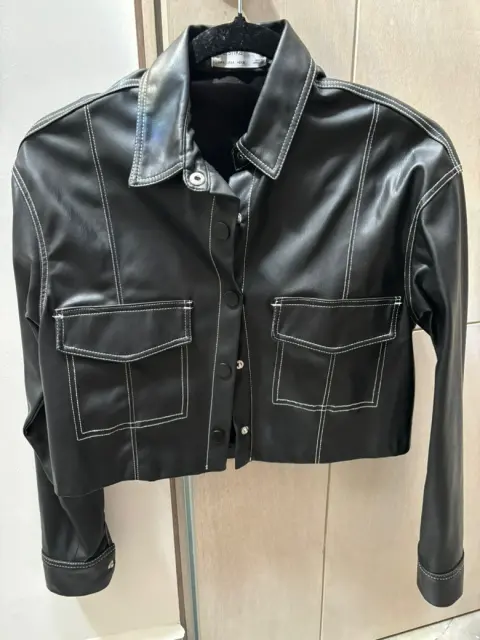 Chamarra de vinil. Es delgada como sobre camisa, en excelentes condiciones. Es corta. Súper bonita para la temporada