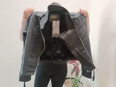 Chamarra de vinipiel. He Mosa charra de vinipiel negra, con forro de felpa, cómoda y súper bonitaTallas: CH M G