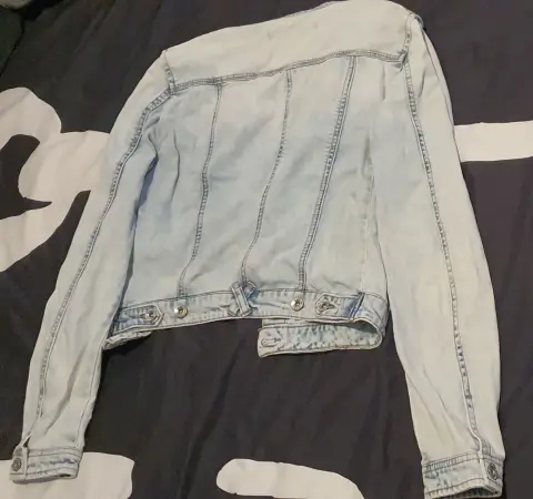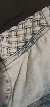 Chamarra DenimTela rígida,delgada tipo Mezclilla deslavadaTiene detalles hermosos trenzadosUsada un par de veces