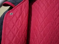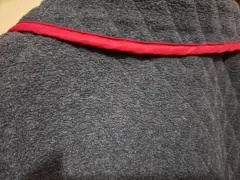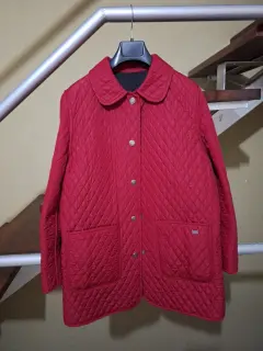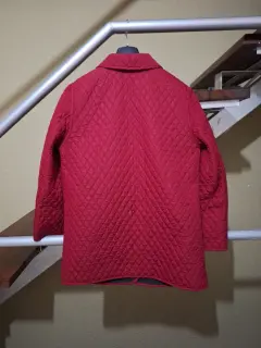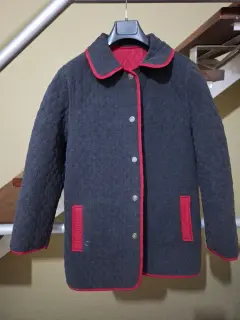 Chamarra doble vista rojo/gris oxford abrigadora, con bolsas, botones metálicos, luce linda,calidad y comodidad. Solo tiene unos puntitos en blanco es mínimo el detalle ver foto. Solo una puesta