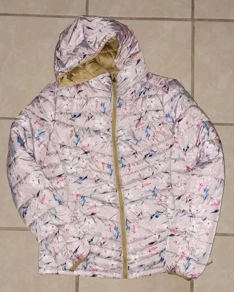 Chamarra nueva de doble vista, con cierre en el gorro para quitarseEstá marcada como talla al pero está un poco reducida queda a una talla mediana