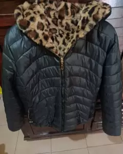 Chamarra doble vista. Chamarra doble vista color negro y animal print de leopardo talla XL es super suave el peluche, prácticamente nueva