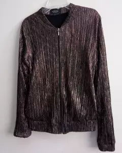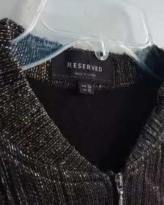 Chamarra plateada con dorada con cierre y bolsasDe uso, tiene algunos hilos jalados pero no se notaMarca ReservedTalla M