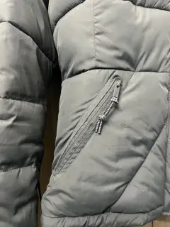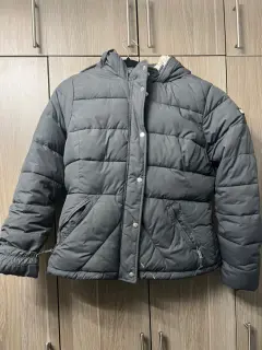Chamarra gris con borrega pachoncita súper calientita de cierre al frente y botones, trae gorro y bolsas al frente con cierre. Talla XL que puede quedar L