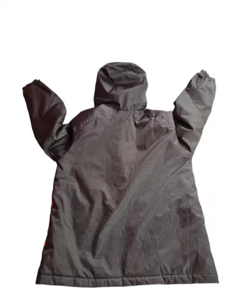 Chamarra impermeable. Chamarra unisex, impermeable, color gris oscuro con naranja, marca SwissTech, cuenta con tres cierres al frente, capucha, talla XL.