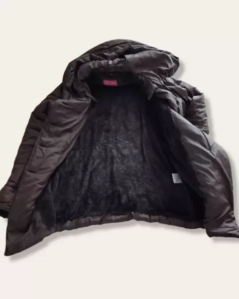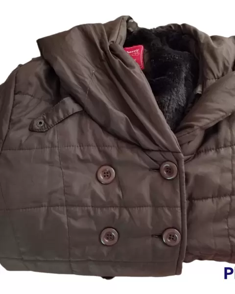 Chamarra invernal color café intacto perfecta para esta temporada de frío y lluvias por fuera es impermeable y por dentro está forrada de peluche del mismo color súper suave y calientita