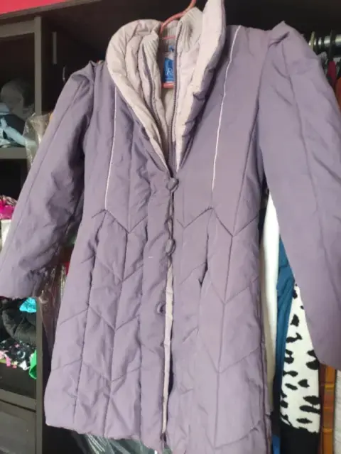 Chamarra invernal para niña. Bonita chamarra de frío para niñaTalla 8 Color morado Marca Rothschild Detalles: falta 1 botón , no afecta