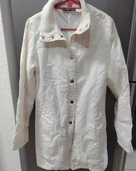 Bonita chamarra larga color blanca en excelente estado con bolsas a los lados