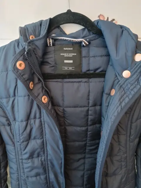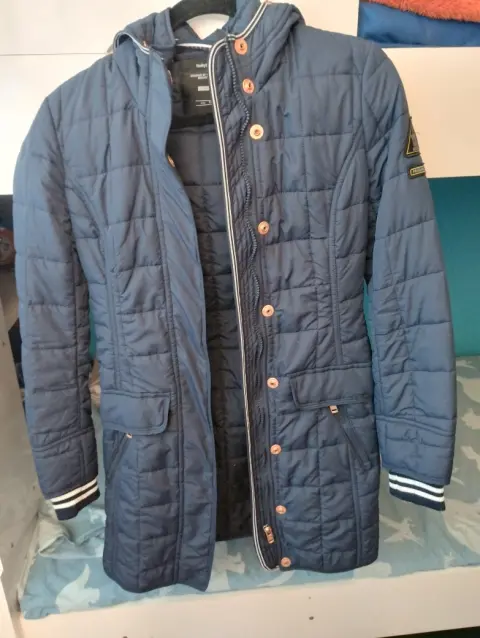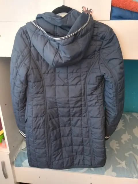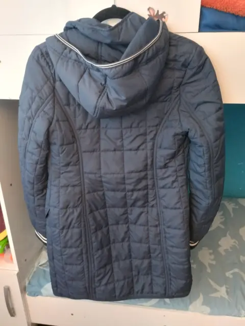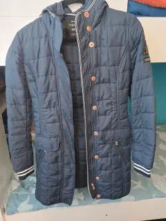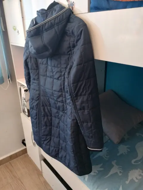 Chamarra larga arriba de la rodilla con gorro y oeluche que se puede poner o quitar fácilmente, en perfectas condiciones