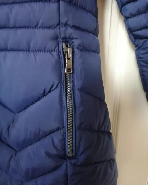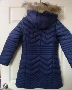 Chamarra larga de dama color azul marino. Bonita chamarra larga de dama con capucha y acolchada, excelente para esta temporada de invierno.