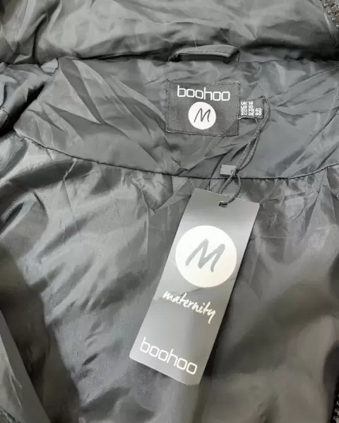 Chamarra larga con gorro, el gorro tiene peluche totalmente desmontable. Es talla M y es de maternidad. Totalmente nueva con etiqueta.