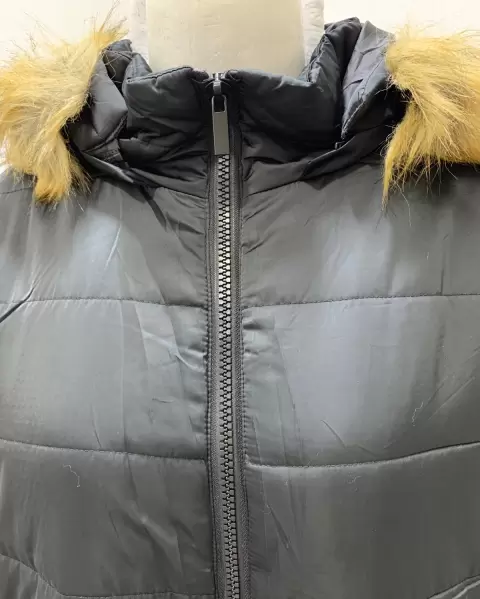 Chamarra larga negra. Chamarra larga con gorro, el gorro tiene peluche totalmente desmontable. Es talla M y es de maternidad. Totalmente nueva con etiqueta.