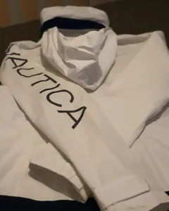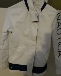 Bonita chamarra rompevientos, marca Nautica seminueva en muy buen estado, blanca con vivos azul marino talla XS