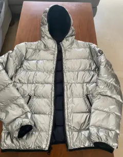 Chamarra metalizada American Eagle. En tendencia! Chamarra metalizada color Plata, talla L, American Eagle con capucha. Es ligera pero abriga dora, ideal para tiempos de frío o lluvia.