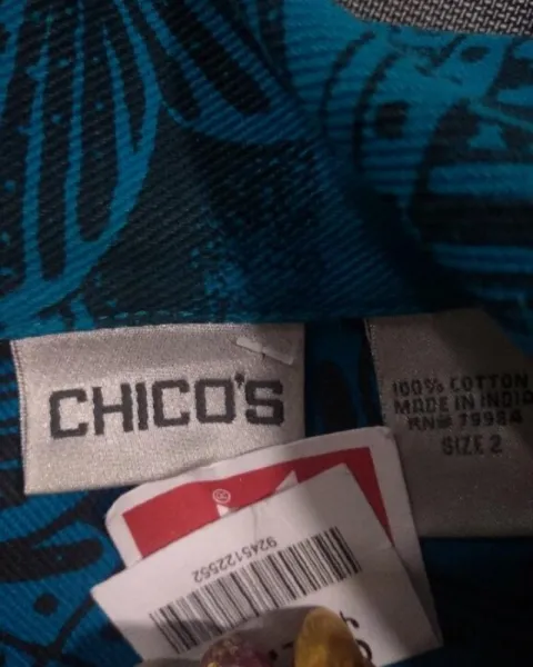 Chamarra mezclilla chicos. Hermosa chamarra de mezclilla de la marca chicos marcada como tallados Qué es equivalente a una talla M queda un poquito holgada esta nueva con etiqueta no tiene ningún detalle y está lista para ser enviada de manera inmediata su estampado es como de flores y se encuentra como difuminado en algunas zonas lo puedes ver en las fotografías.