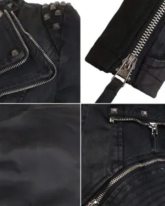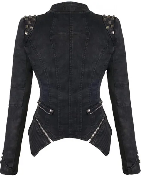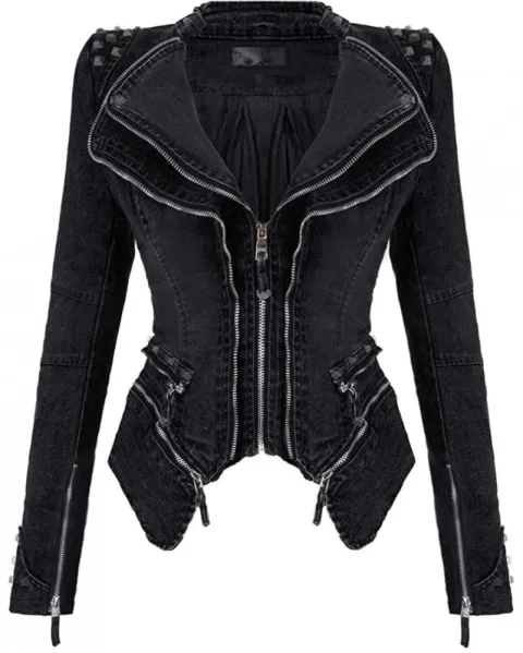 ✨IMPORTADA: Chamarra de mezclilla tipo rock star, excelente mano de obra, muy comoda al tacto, hombrera con remaches, doble solapa con cierre, mangas largas con cierre, parte inferior extraible, estilo corto. Etiquetado en M, viene reducida, Ideal para talla S. ✔️Si esta publicado esta disponible ♻️Envio en cajas recicladas ‼️Sí es tu primera compra en la aplicacion utiliza mi codigo “OjosTapatioswqypc” y te regalo $100 pesos!