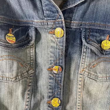 Bonita chamarra mezclilla, botones color amarillo, marca sexy jeans, tiene detalle ver ultima foto