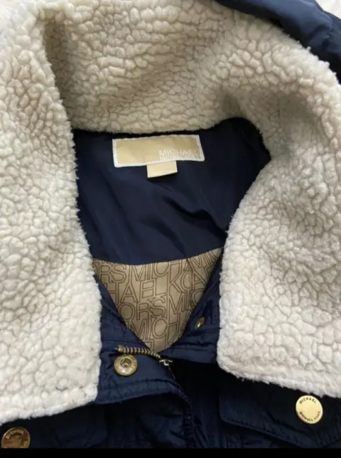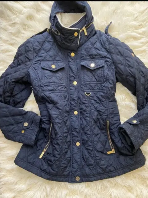 Bonita chamarra Michael Kors talla L azul marino, es tipo palomar , tiene el logo de la marca en el forro interno , incluye gorra con ziper para ocultarla.