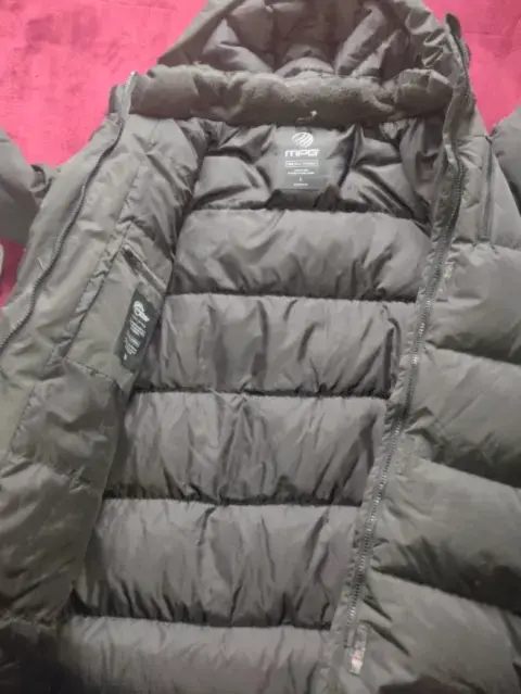 Chamarra MPG original. Chamarra talla L larga hasta media pantorrilla, en excelentes condiciones se uso 1 vez, sin detalles con capucha, cierre, cierres a los lados súper calientita