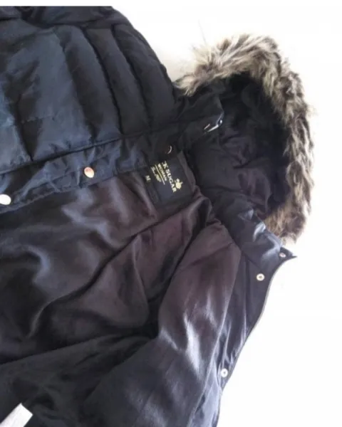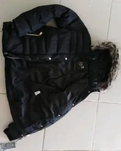 Chamarra negra con gorro. Chamarra forrada por dentro, calentita, gorro desmontable