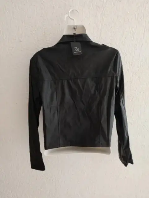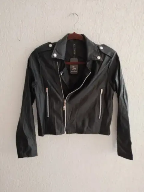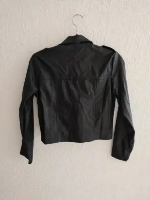 Hermosa chamarra negra corta, se amolda a tu cuerpo. Medidas: 46cm de largo, 44cm de axila a axila y 56cm de mangas
