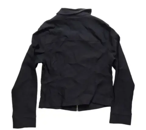 Chamarra negra delgada nueva. Chamarra negra, marca Cuidado con el perro, talla L, 70% viscosa, 25% poliamida y 5% elastano, estira. Es ligera y práctica para usar con outfits casuales y formales, completamente nueva.Hombro a hombro 37 cm.Axila a axila 44 cm.Largo total 52 cm.