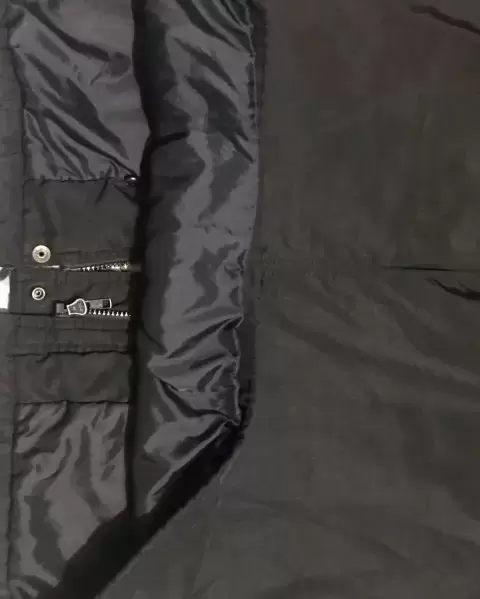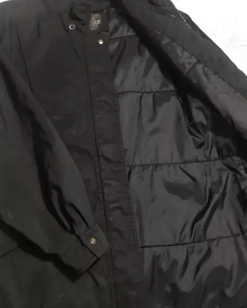 Chamarra negra, marca Forecaster, talla M, es amplia da a una talla L, le falta el gorro, impermeable. Sin detalles.