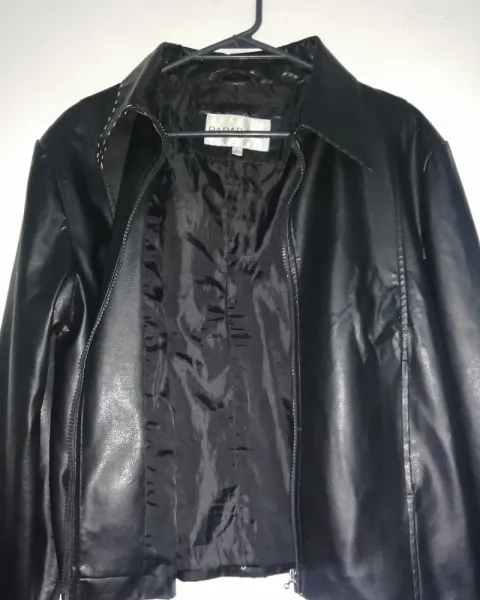 Hermosa chamarra negra, tipo piel, en perfectas condiciones, talla grande❤️❤️MEDIDAS ❤️❤️Largo 55 cmLargo de mangas 65 cmCintura 104Axila a Axila 53 cm🤑🤑ACEPTO OFERTAS 🤑🤑