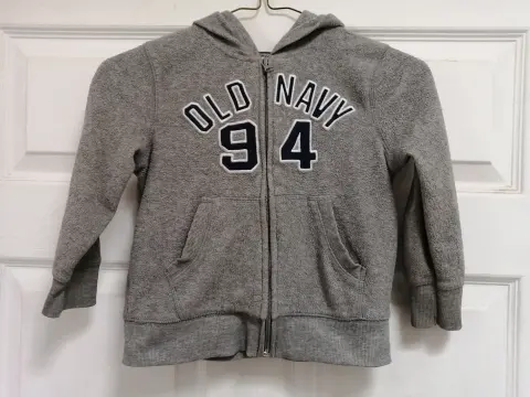 Chamarra Old Navy para niño, talla 5, color gris, con capucha.