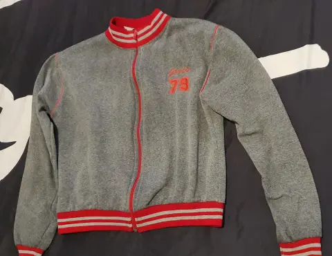 Chamarra tipo Old SchoolTela strech,un poco calentitaCierre funciona al 100,sin detallesUnitalla
