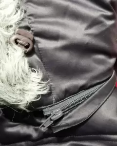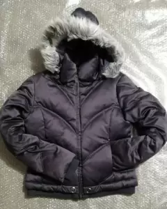 Chamarra para dama Talla M Color Gris pluma de Ganso con Gorro Desmontable. Usada en Perfectas Condiciones.