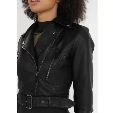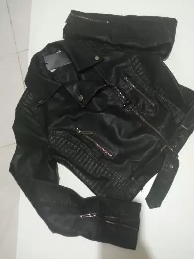 Chamarra para dama. Tipo bikerEn tactopielTalla 2xl en etiqueta (mediana)Color negraExcelente calidad, con etiqueta