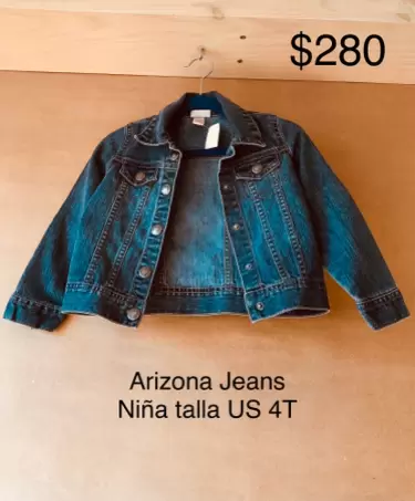 Chamarra para niña. Mezclilla azul deslavado con corazones de mezclilla en los codos, marca Arizona jeans co.