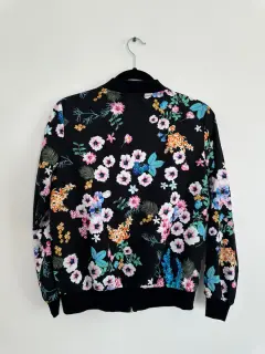 Chamarra Petite Studio. Chamarra de tela súper delgadita, fresca y bonita, es negra con flores, está nueva literal