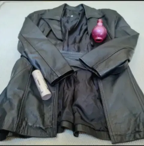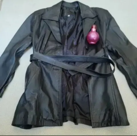 Tiene un corte muy bonito medidas busto 56cm, largo 76cm manga 56cm, tiene una raspada en la manga en la parte del dobles