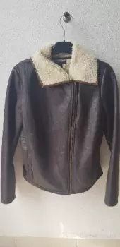 Hermosa chamarra café con forro de borrega beige talla S en buen estado, hermosa te cubrirá del frío solo se utilizó 3 veces el único detalle