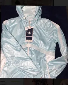 Preciosa chamarra retro Greenlander con aplicaciones en red y tela tipo rompe vientos, dice que es verde agua, la percibo mas azul cielo. Esta amplia, puede quedar a una talla más.TOTALMENTE NUEVA!.Te regalo $100 en tu primer compra con el siguiente código: StephyBmTquM (Validó en compras mayores a $1000)