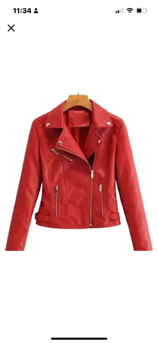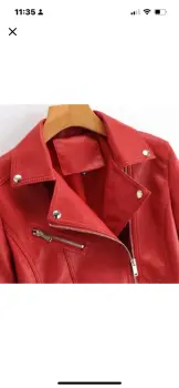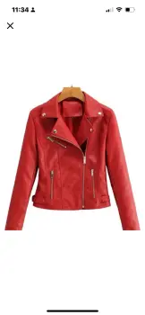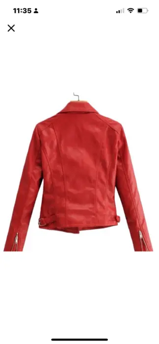 Chamarra roja. Súper linda chamarra roja de imitación de piel con cierres en las mangas, talla chica o extrachica