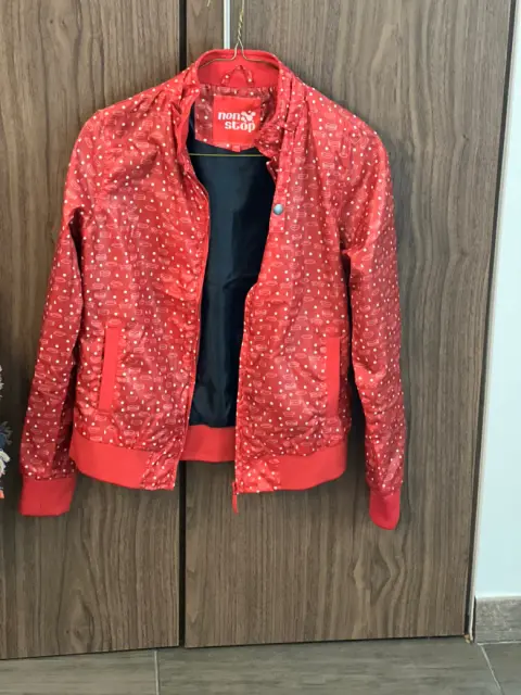 Chamarra roja con dibujos de labios , la compré talla chica solo la use una vez por que no me quedo esta en excelente estado , el cierre y los puños están como nuevos