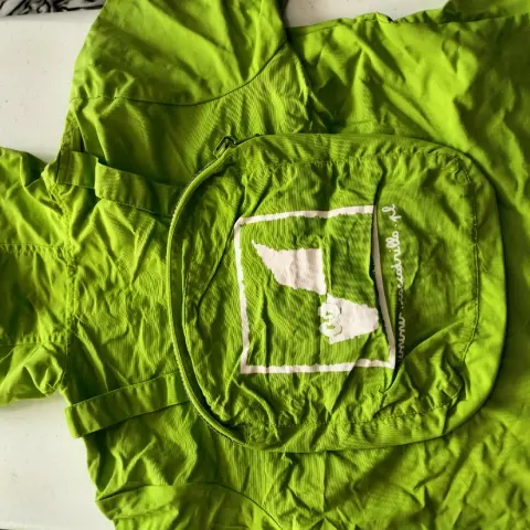 Es una chamarrita para niño en excelentes condiciones, tiene bolsa en la parte de atrás que se puede utilizar para llevar tus cosas además que al quitarte la chamarra la puedes guardar en la bolsa que ya trae incluida, está increíble.