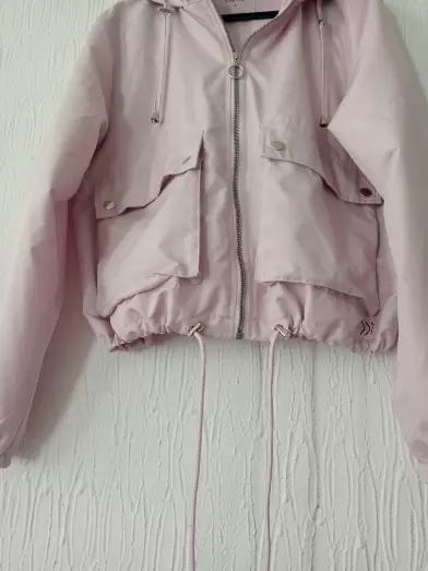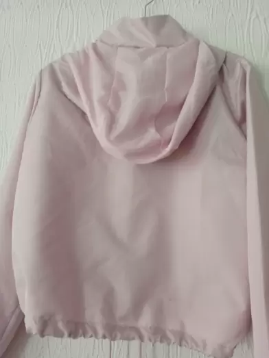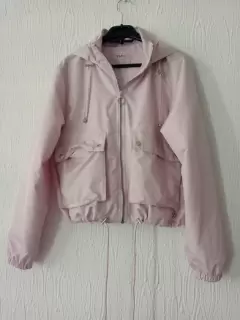 Chamarra rompe vientos color rosa palo con todos sus broches en perfectas condiciones, tiene capucha y ajuste de ella , cuenta con cordones en la parte de abajo para ajustar a tu medida .Largo 53 cm .Axila a axila 52 cm .