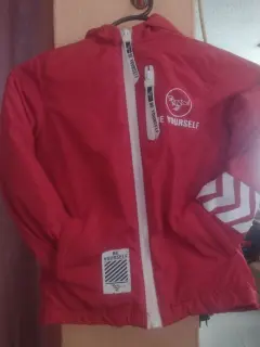 Chamarra rompevientos. Chamarra roja de niño, puesta un par de veces exelentes condiciones, bolsas laterales y en pecho, buen funcionamiento en cierres.