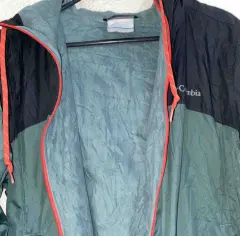 Súper bonita chamarra rompevientos Columbia. Talla: XS, pero viene amplia queda a S-M. Esta nueva sin usar porque me quedo grande, tiene bolsas a los costados con cierre, trae su gorro y adentro su forro es calientito y muy suave al tacto. Sin detalles. No la he utilizado.