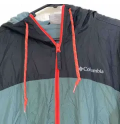 Chamarra rompevientos Columbia. Súper bonita chamarra rompevientos Columbia. Talla: XS, pero viene amplia queda a S-M. Esta nueva sin usar porque me quedo grande, tiene bolsas a los costados con cierre, trae su gorro y adentro su forro es calientito y muy suave al tacto. Sin detalles. No la he utilizado.
